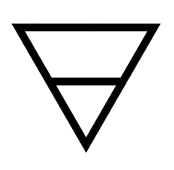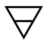 La Terre est représentée par un triangle inversé avec une ligne horizontale (▽), signifiant la stabilité et l'ancrage. Le triangle inversé montre la gravité et l’immobilité, et la ligne horizontale renforce l’idée de solidité, de matérialisation et de structure.