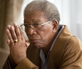 Stéréotype phlegmatique : Morgan Freeman organise une vente dans son jardin. Alors que la foule se presse pour acheter des objets, un voisin impatient se précipite vers lui avec une boîte de vieux disques vinyles. « Monsieur Freeman, ces disques sont-ils en bon état ? Je suis pressé, je dois savoir ! »