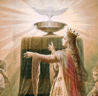 Enfin, le Saint-Esprit incarne le principe féminin, la matrice réceptive qui permet au Fils de s'orienter et de s'unir au Père. Il peut être vu comme une énergie enveloppante, une force de liaison qui harmonise et guide le processus de création. On peut voir cette énergie féminine comme une matrice ou un contenant sacré (le Graal), qui permet à la force créatrice de s’organiser, de trouver sa direction, et de s’unir à l’Esprit infini. Sans ce rôle réceptif, la force masculine serait dispersée ou chaotique, manquant de structure pour retourner vers l’unité.